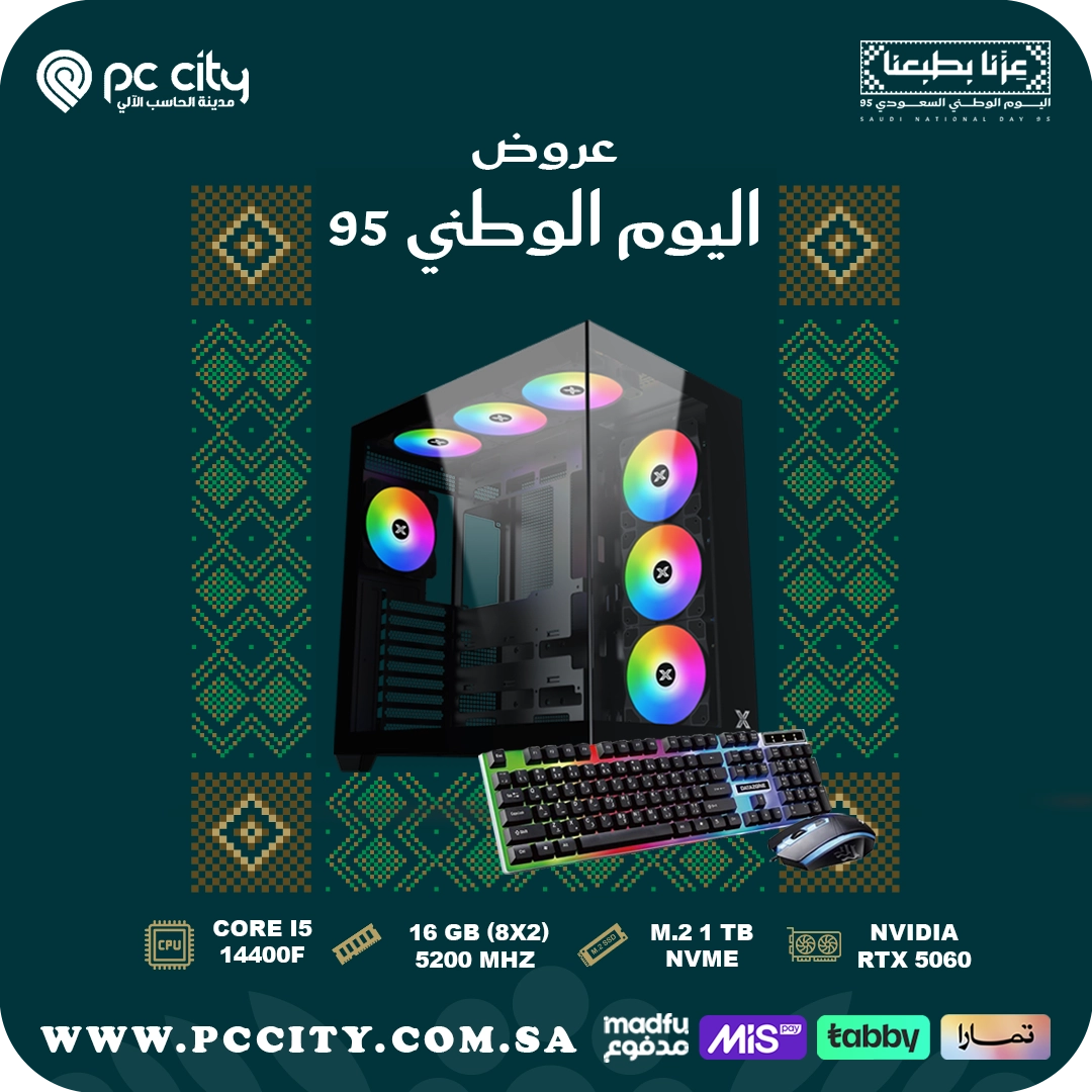 تجميعة بي سي اقساط RTX-5060-8GB-i5-14400F-16GBRAM 5200MHZ-M.2-1TB