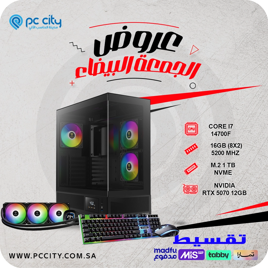 تجميعة احترافية pc تجميعة RTX-5070-12GB-i7-14700F-16GBRAM 5200MHZ-M.2-1TB